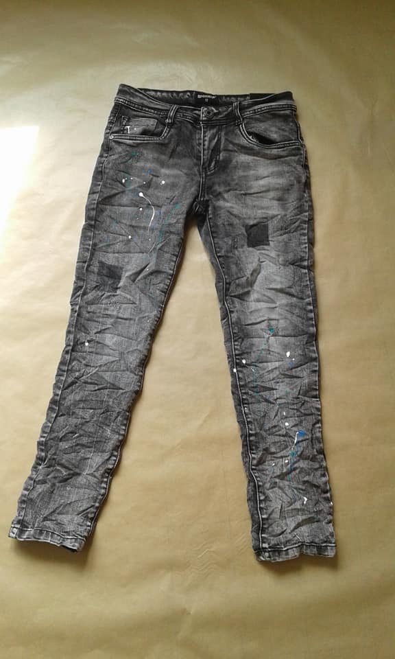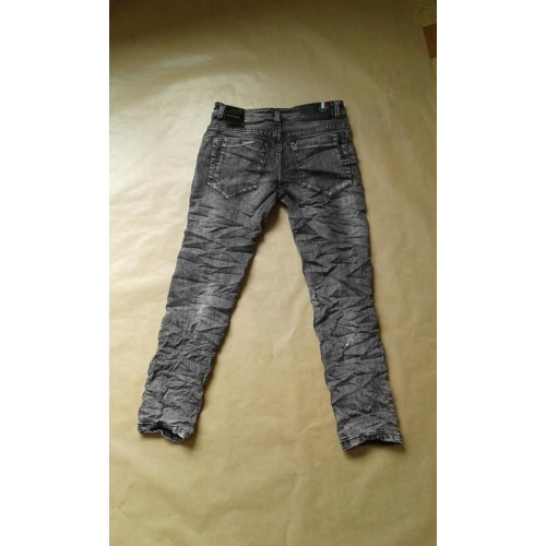 Jeans garçon fashion taille réglable délavé à effet froissé de couleur gris