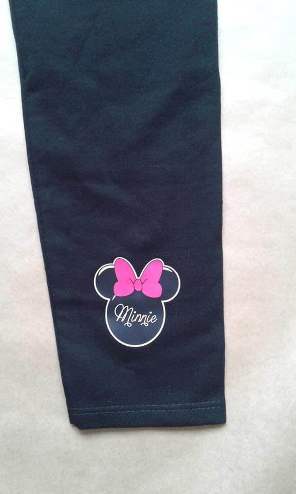 Leggings moletonné chaud floqué tête et noeud minnie.