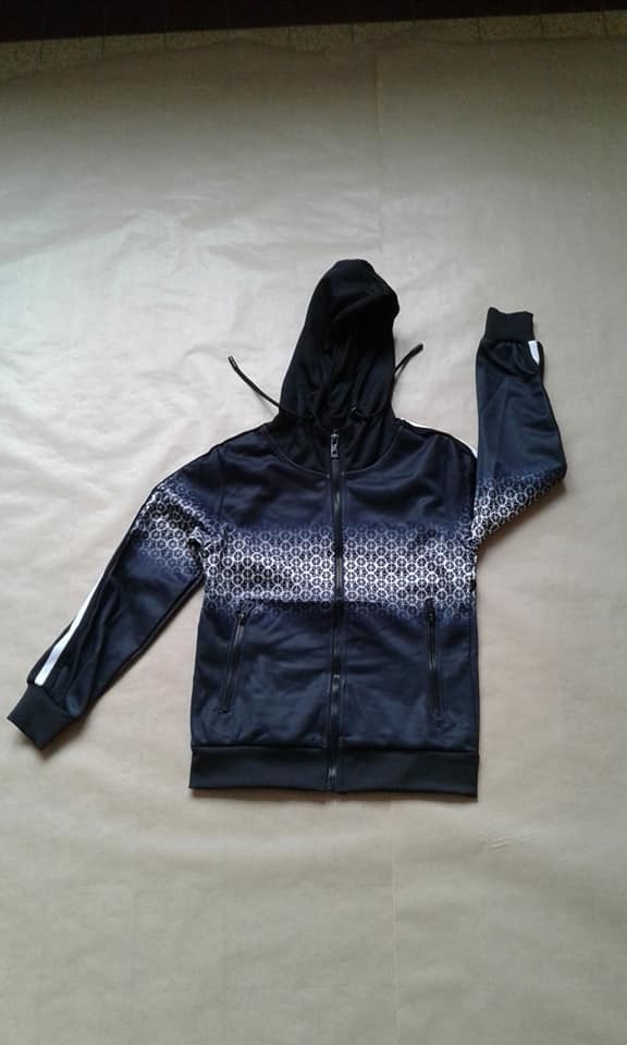 Ensemble de survêtement avec capuche de couleur noir et blanc.