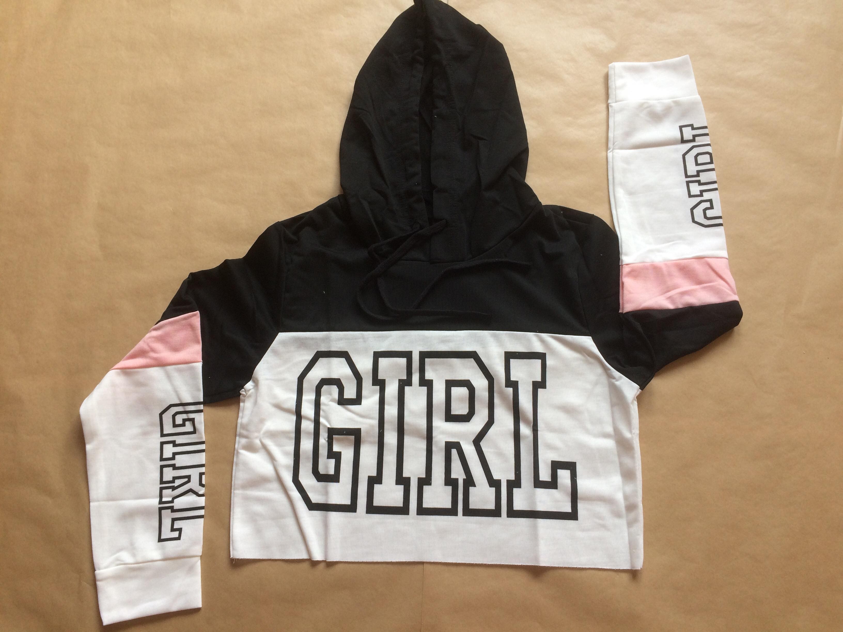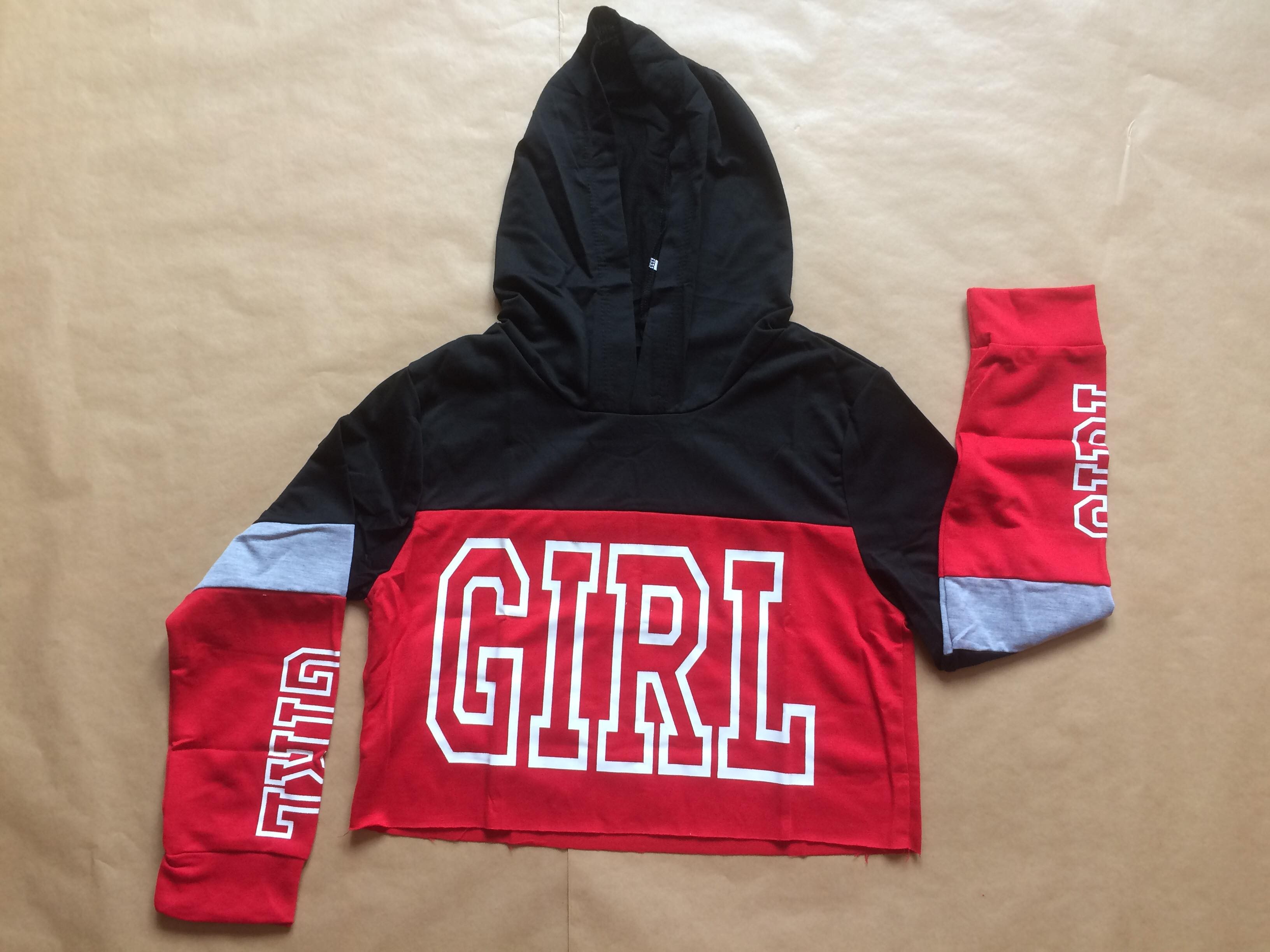 Sweet a capuche de avec écriture GIRL dans 3 coloris différant rose,rouge ou rouge, noir mais égallement noir, blanc, rose.