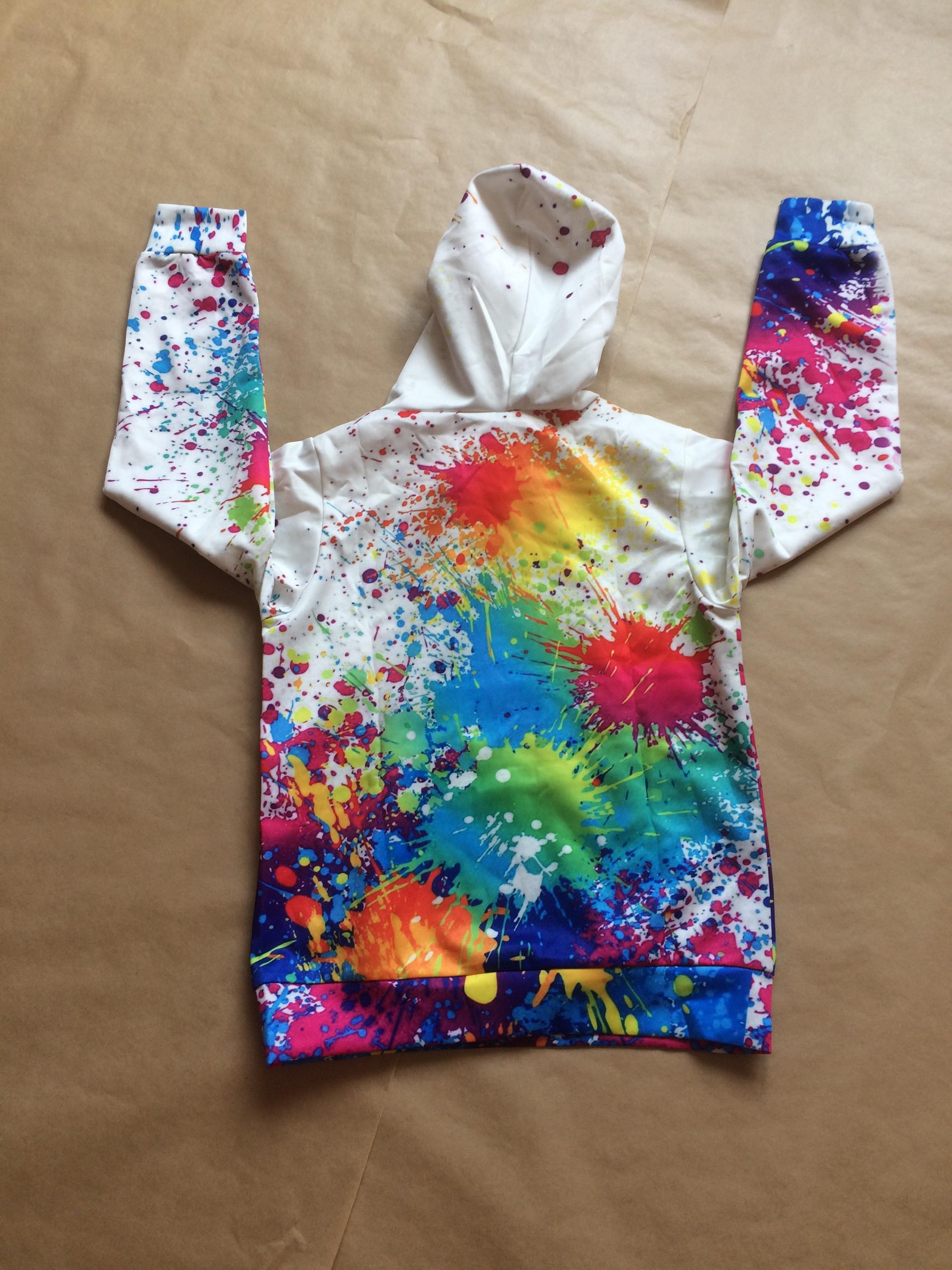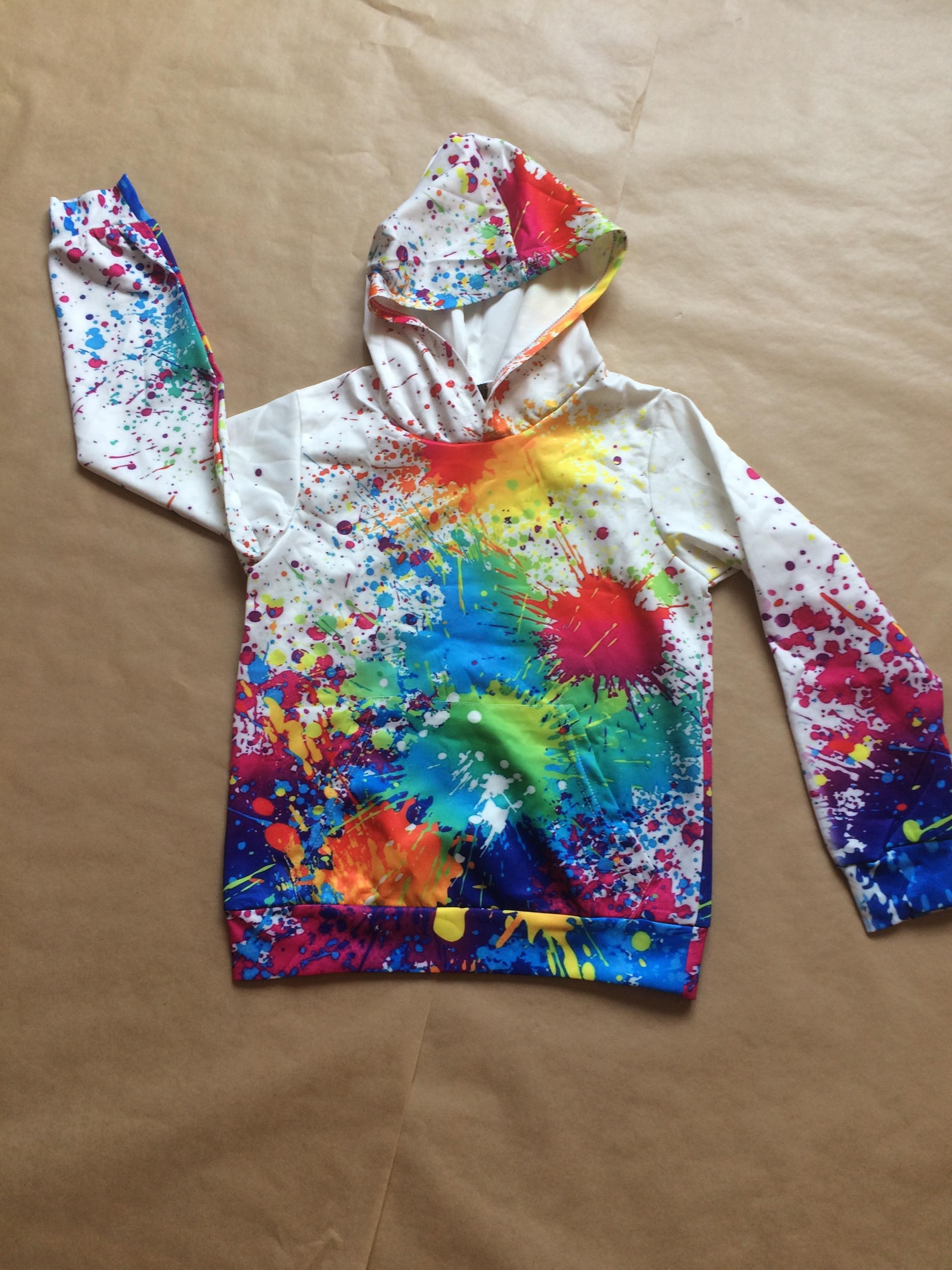 Sweet avec capuche de couleurblanc avec effet tache de peinture.