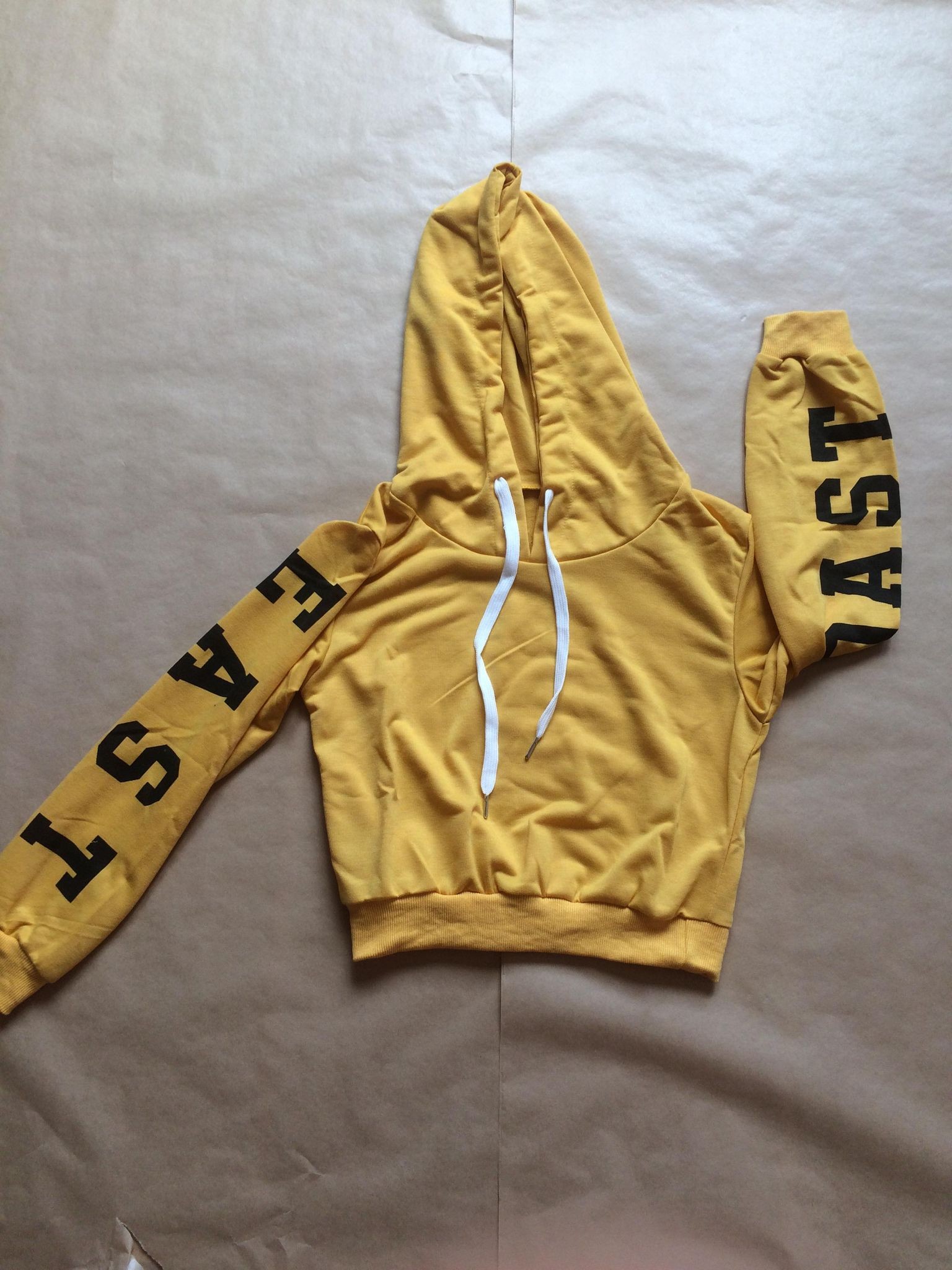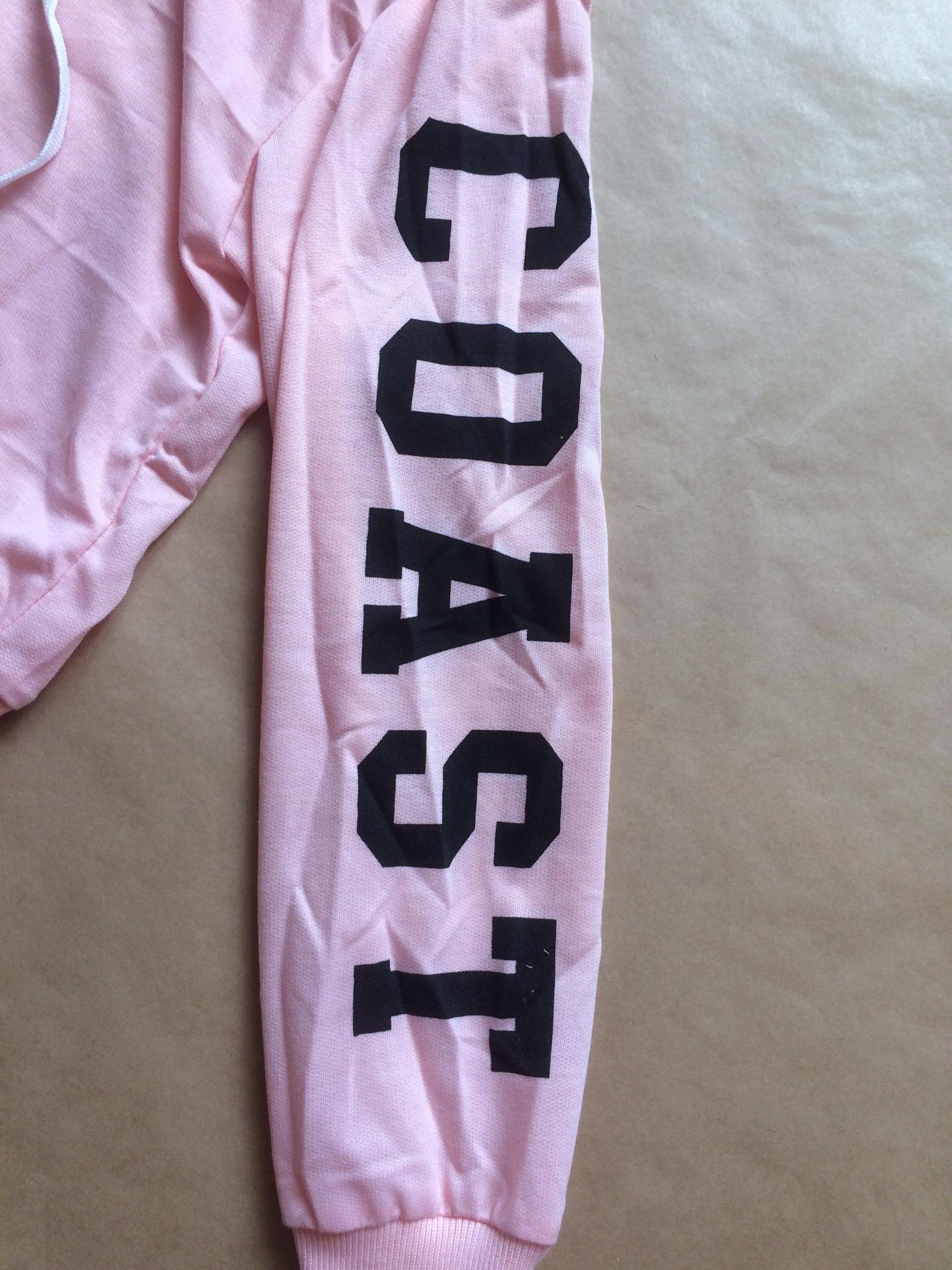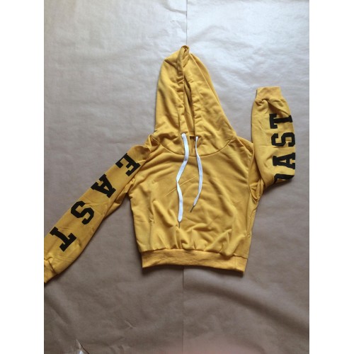 Sweet avec capuche et écriture. Disponible en couleur rose, moutarde ou noir.